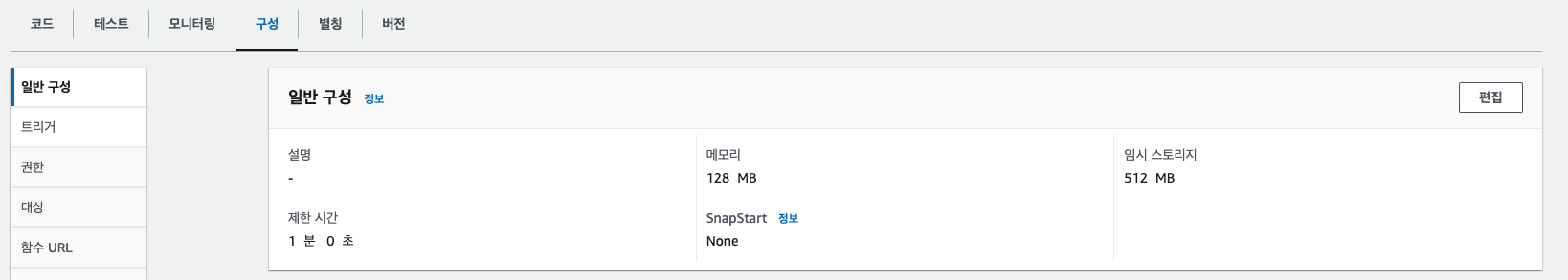 - lambda기본 제한시간 3초에서 1분으로 변경하기