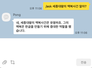 - "생각이 다 끝남?"버튼 클릭이면, 파일에 저장된 응답 결과를 응답해준다
