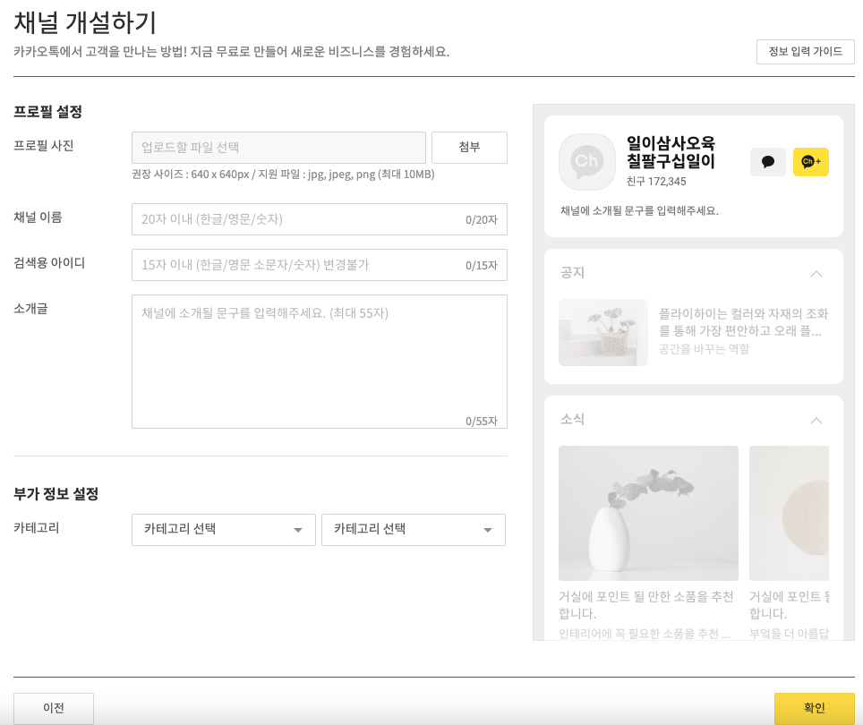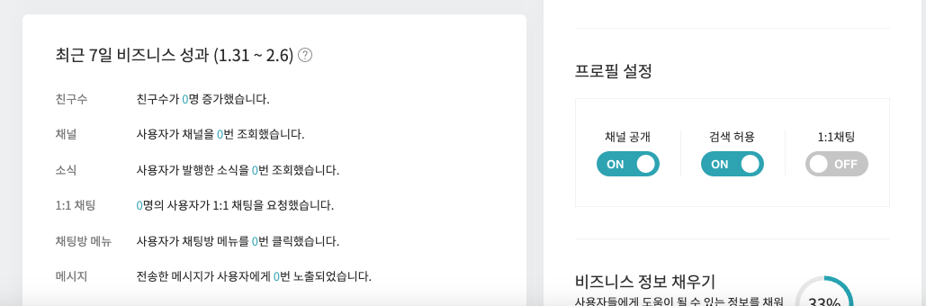- 오른쪽 하단에 채널공개, 검색허용 on으로 셋팅