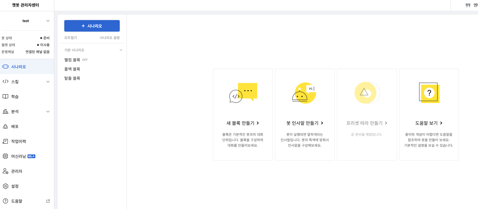 - 왼쪽상단 채널 클릭 -> 서랍형태로 챗봇나오면 클릭