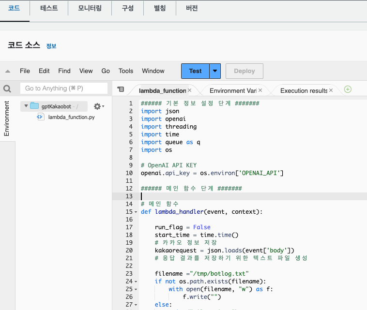 - lambda 셋팅 전, 카카오 챗봇이 작동되는 구조