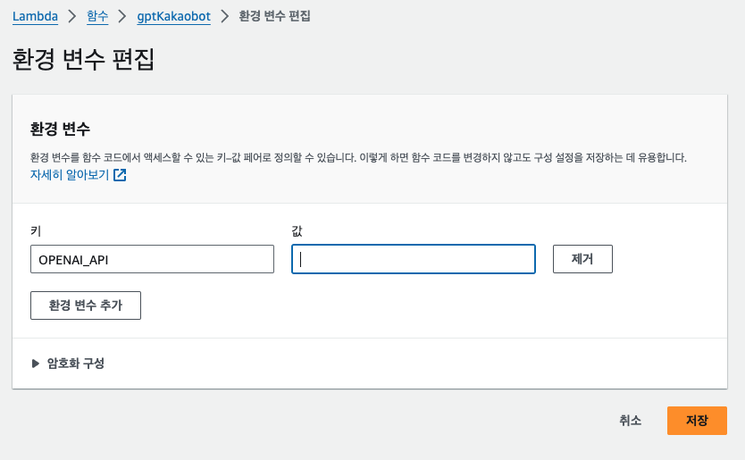 4. 카카오 챗봇에 24시간 응답해주는 lambda서비스 연결해주기