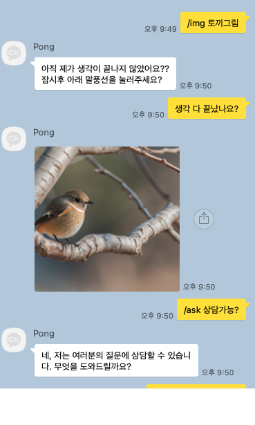 - 카카오 챗봇의 경우 5초간 응답이 없으면 에러가 발생