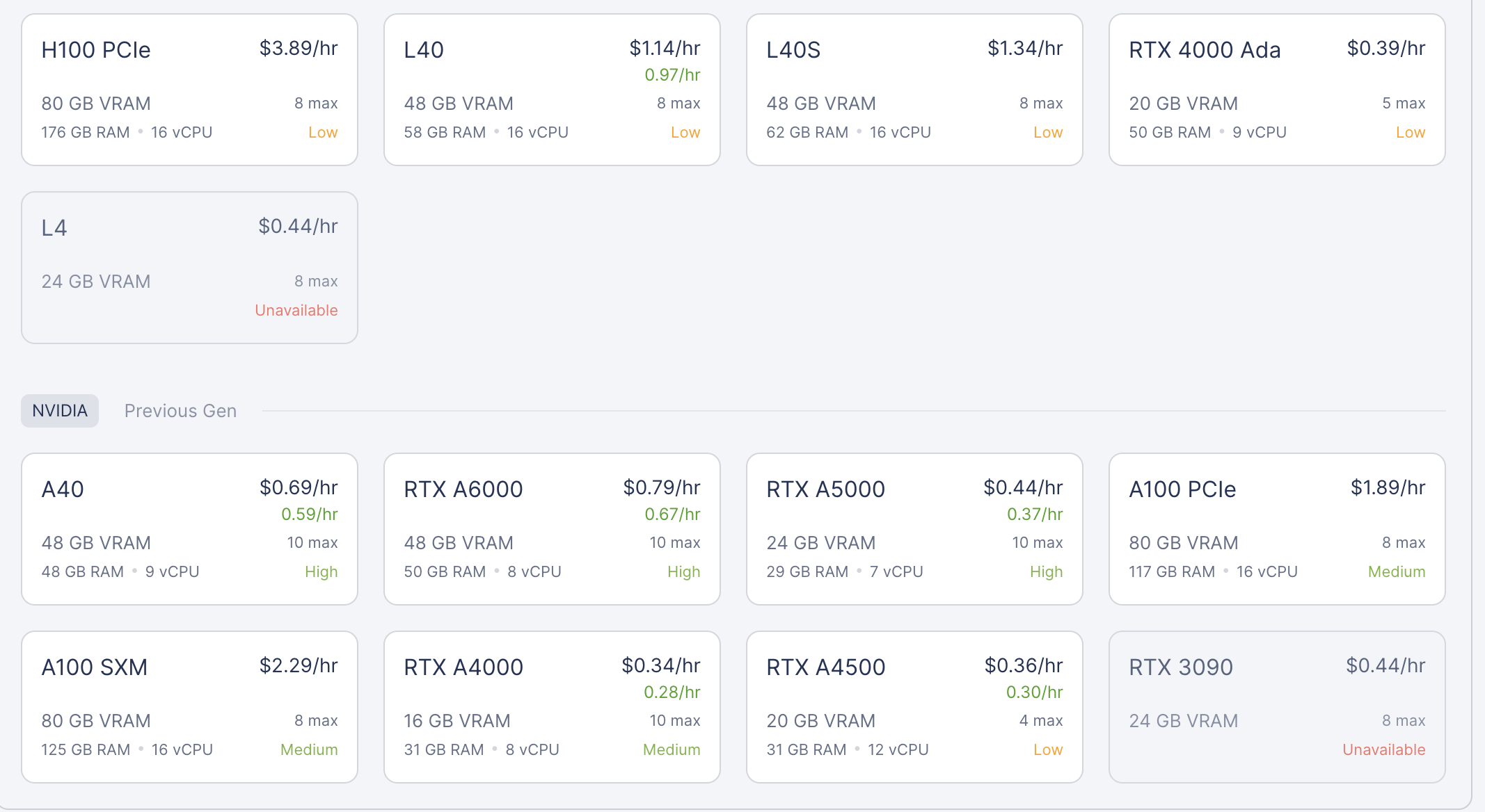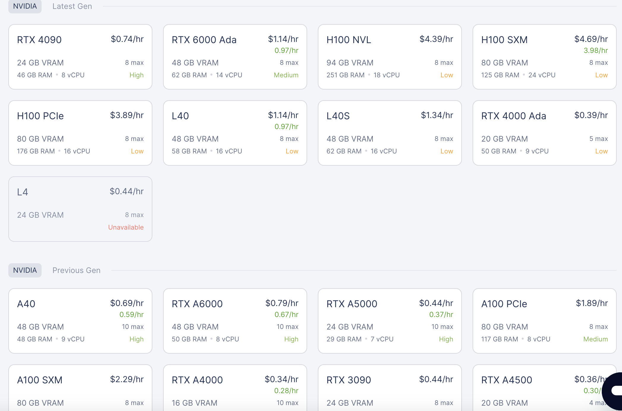 A100가격이 싼줄은 모르겠지만...GPU가 다양하다. 그래서 굳이 40G가 필요하지 않은 작업은 작은 GPU를 고르는 것이 가능하다.