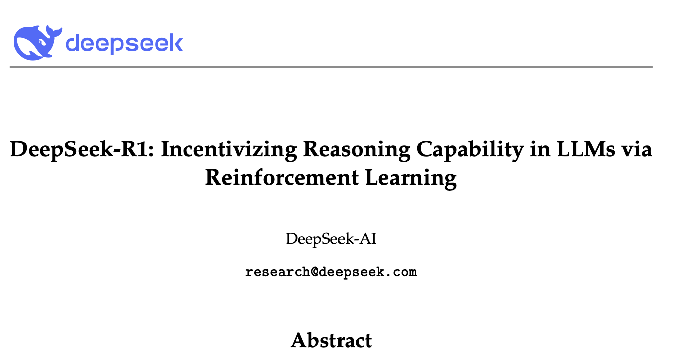 V3에 GRPO라는 강화학습만 실행하여 탄생한 모델. 여기에서 주요 시사점이 등장하는데,