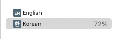 왼쪽상단 프로젝트 클릭 > 가운데 프로젝트 클릭 > Info탭 클릭 > Localizations에서 +눌러서 Korean추가