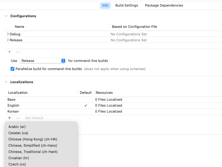 나처럼 이미 한글로 많이 진행된 프로젝트라면 String Catalog 사용하시길 개인적으로 추천한다.