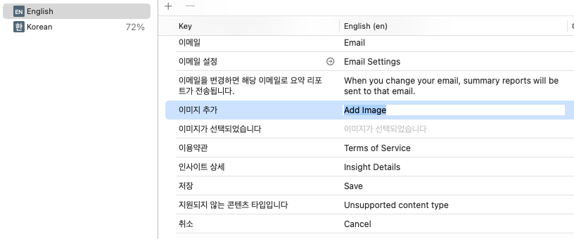 Localizable.xcstrings파일에서 English를 확인해보면